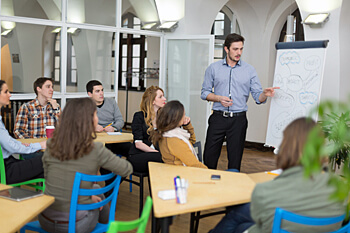 Eine Besonderheit der privaten Hochschulen sind die kleinen Lerngruppen. Meist ist die Größe eines Semesters vergleichbar mit der Klassengröße in der Schule. Du sitzt also mit 30-40 Leuten zusammen in den Kursen, was eine kollegiale und familiäre Atmosphäre schafft. Jeder findet einen Platz und erhält die gleiche Aufmerksamkeit von Dozenten und Professoren.
